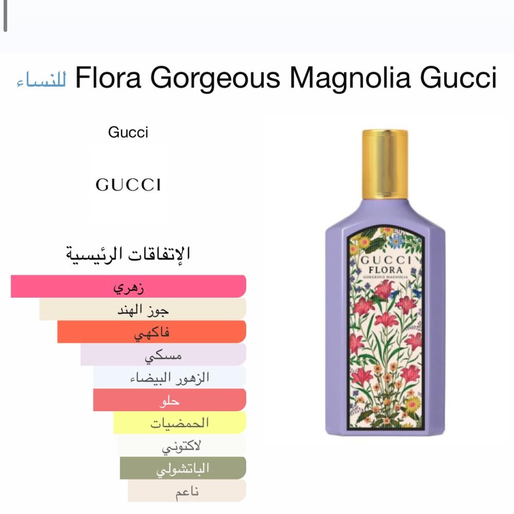 عطر Gucci Flora Gorgeous Magnolia يُبرز القوة الداخلية، مسلطًا الضوء على إشراقة وقوة زهرة الماغنوليا. لتعزيز حلاوة مستخلص الماغنوليا، تمت إضافة نفحات التوت البري لإضفاء بُعد فاكهي وعصير. يُستخدم مستخلص الباتشولي لإضفاء توازن بين الانتعاش والحسية، مما يجعل العطر جذابًا ومميزًا.